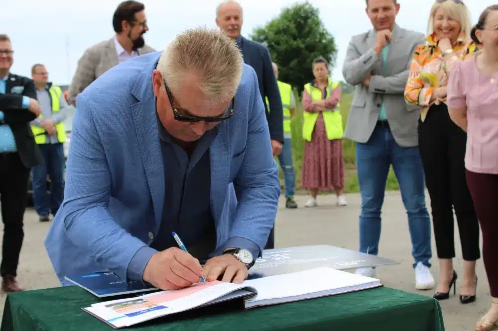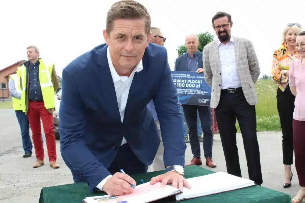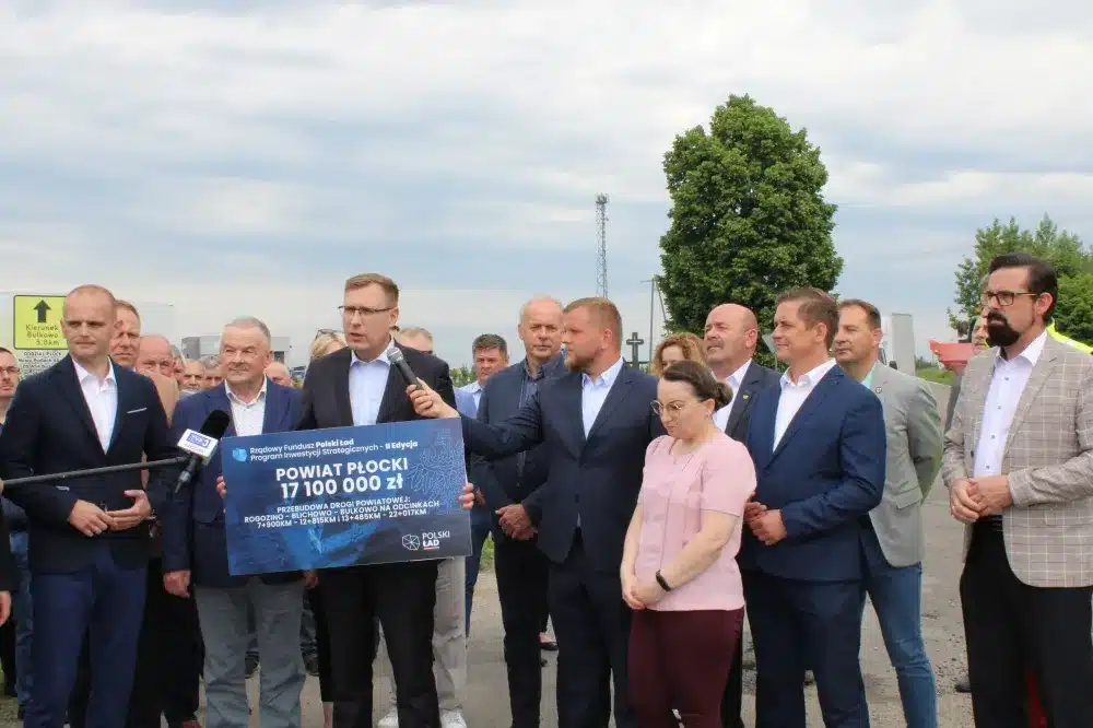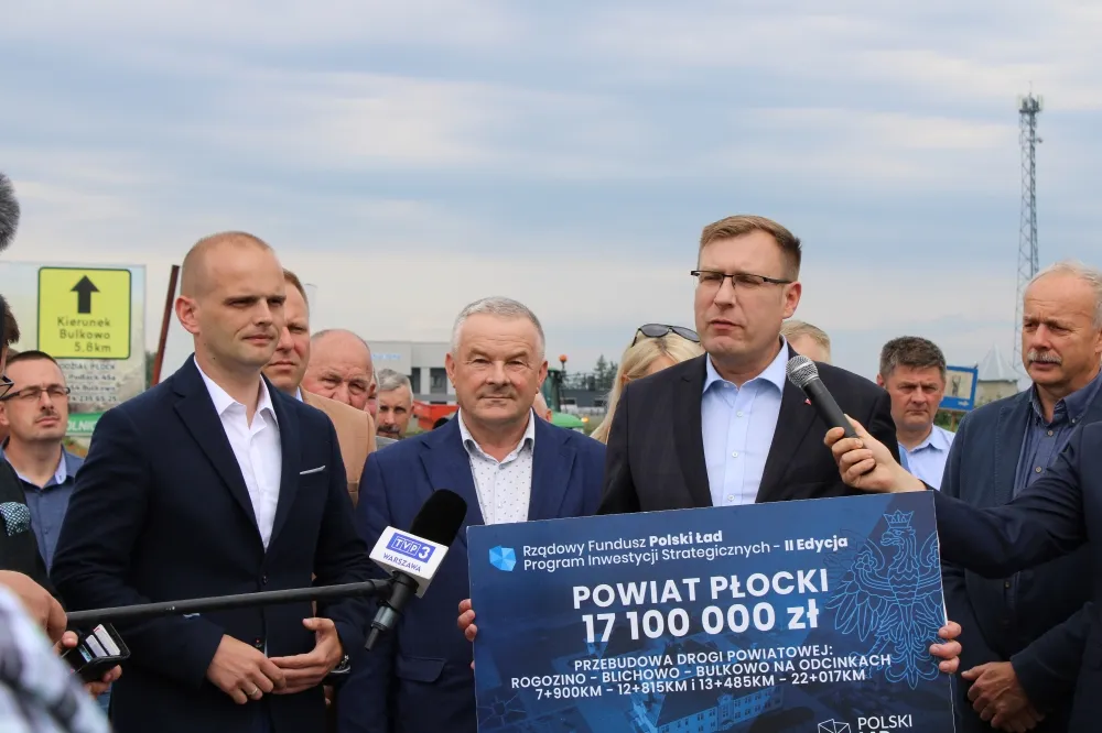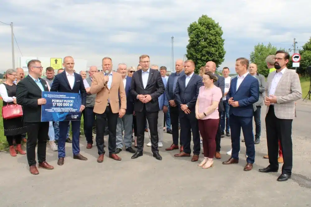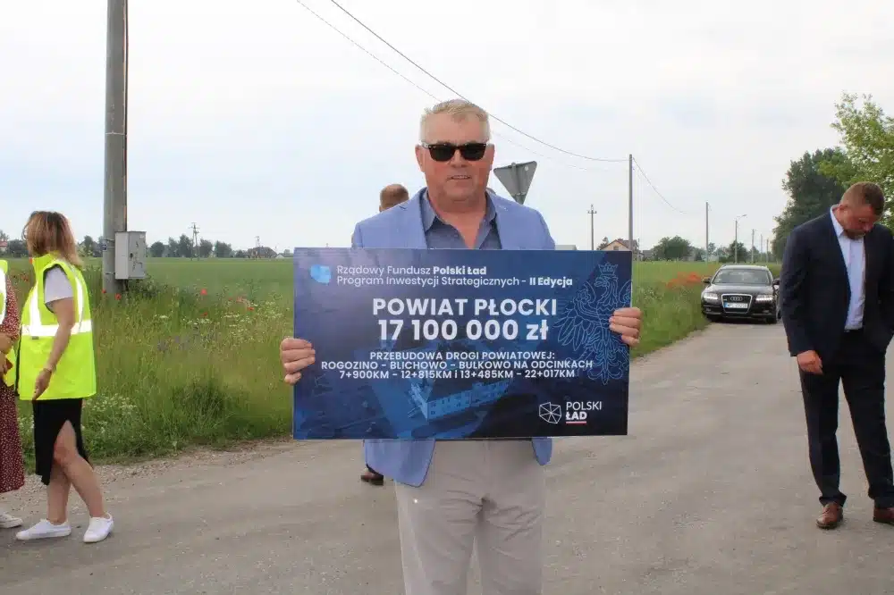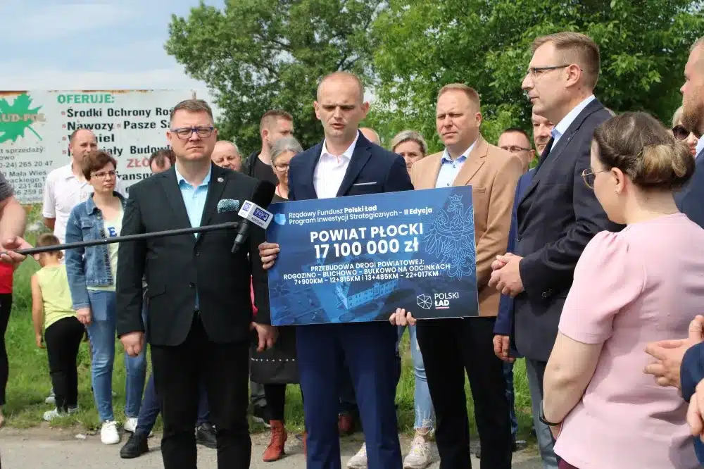Symboliczny czek wręczył w poniedziałek, 13 czerwca, Sekretarz Stanu w Ministerstwie Aktywów Państwowych Maciej Małecki. W wydarzeniu wzięli udział m.in.: Starosta Płocki Sylwester Ziemkiewicz, Wicestarosta Iwona Sierocka i pozostali Członkowie Zarządu Powiatu: Bogdan Banaszczak, Paweł Bogiel i Apolinary Gruszczyński, Przewodniczący Rady Powiatu w Płocku Lech Dąbrowski i Radni Powiatu: Anna Dębska-Gutkowicz, Marlena Mazurska, Bogdan Matczak, Piotr Skorupski, Wójt Gminy Bulkowo Gabriel Graczyk, Sekretarz Powiatu Michał Twardy, Dyrektor Zarządu Dróg Powiatowych w Płocku Marcin Błaszczyk, Dyrektor Wydziału Rozwoju Gospodarczego i Promocji w Starostwie Powiatowym w Płocku Karolina Koper. Nie zabrakło również mieszkańców, którym ta inwestycja nie tylko poprawi komfort życia, ale przede wszystkim zwiększy bezpieczeństwo.