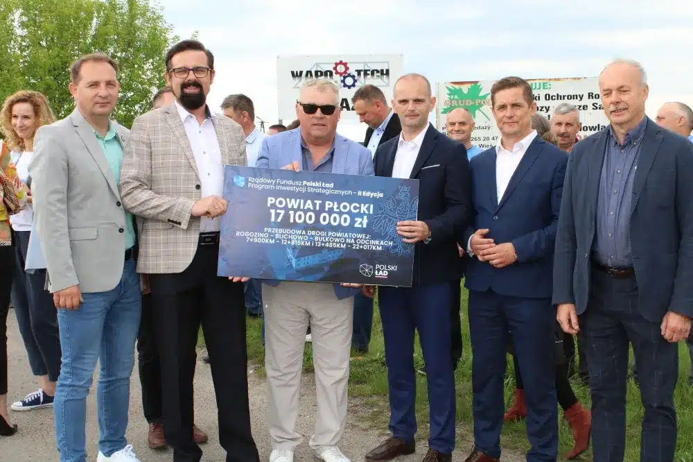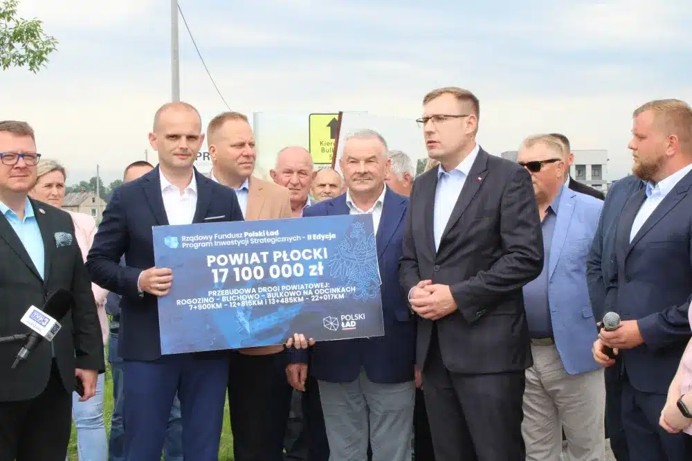 Początek przebudowy drogi powiatowej nr 2935W Rogozino – Blichowo – Bulkowo zbliża się wielkimi krokami. W poniedziałek, 13 czerwca, władze Powiatu Płockiego otrzymały symboliczny czek na kwotę 17,1 mln zł i obietnicę, że wkrótce pieniądze fizycznie trafią do powiatu.