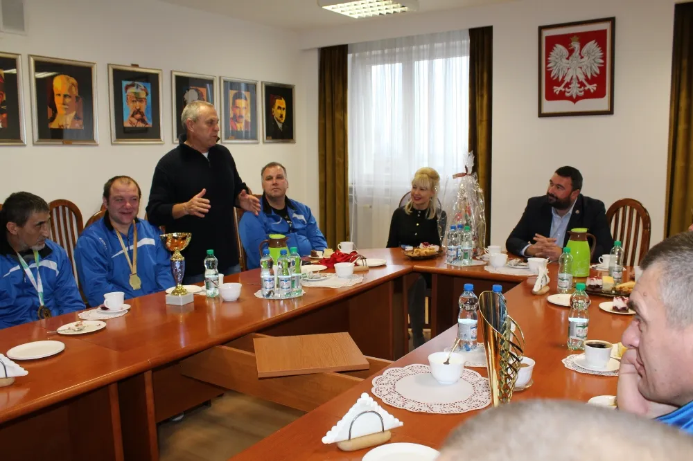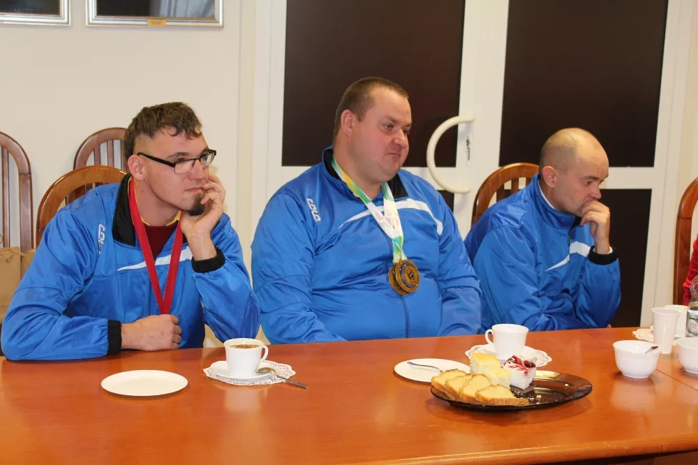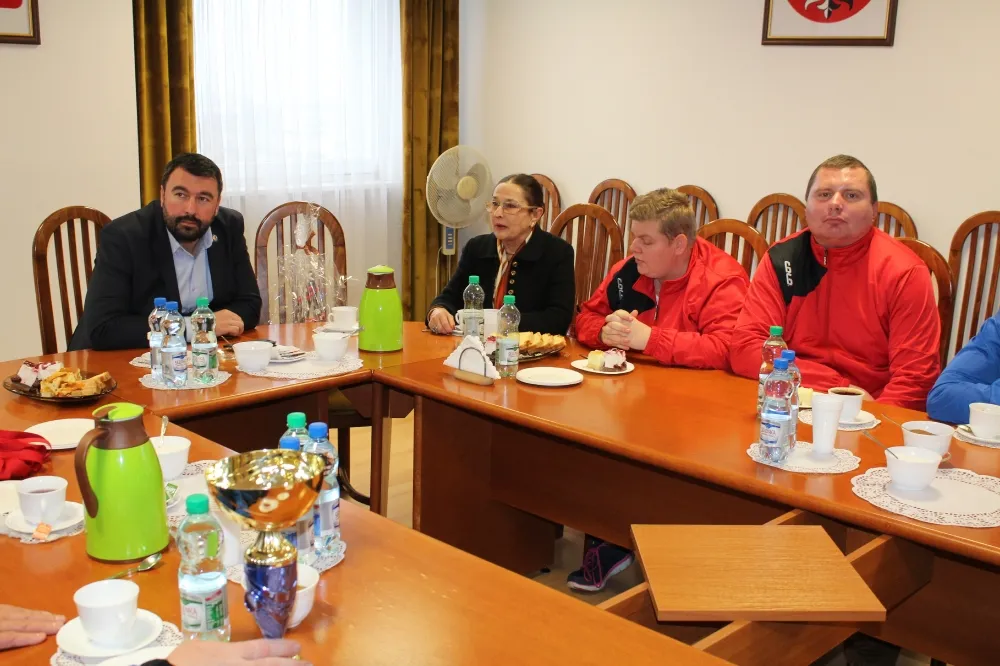 Sportowcom, podczas spotkania ze Starostą Płockim Mariuszem Bieńkiem oraz Wicestarostą Iwoną Sierocką, towarzyszyli Dyrektor DPS-u w Nowym Miszewie Barbara Stańska – Mackiewicz oraz trenerzy: Paweł Jankowski, Kazimierz Zygner, Mariusz Żukowski.