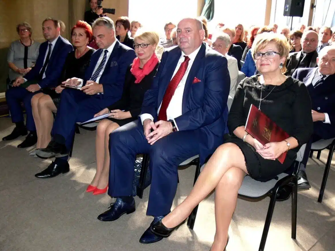 Pani Iwona Sierocka – Wicestarosta Płocki w swoim wystąpieniu powiedziała: „są takie dni w życiu kiedy wspominamy przeszłość i myślimy o przyszłości – to dni jubileuszy (…) to jednocześnie czas podsumowań i zamierzeń” Podziękowania za pomoc w realizacji tych zamierzeń złożyła Panu P. Zgorzelskiemu, Panu A. Struzikowi, Panu J. Ciastek, wszystkim dotychczasowym Dyrektorom i obecnej Dyrektor Danucie Kowalkowskiej-Fiłoniuk oraz współpracownikom. W imieniu władz Samorządu przekazała najserdeczniejsze gratulacje i wyrazy uznania z okazji Dnia Edukacji Narodowej wszystkim nauczycielom oraz uhonorowała nagrodą Starosty Płockiego Pana Wicedyrektora Zespołu Szkół Sławomira Sztygiela. Wraz z Panem L. Dąbrowskim oraz Panią M. Struzik wręczyła na ręce Pani Dyrektor upominek- rzytnik multimedialny i bukiet kwiatów.