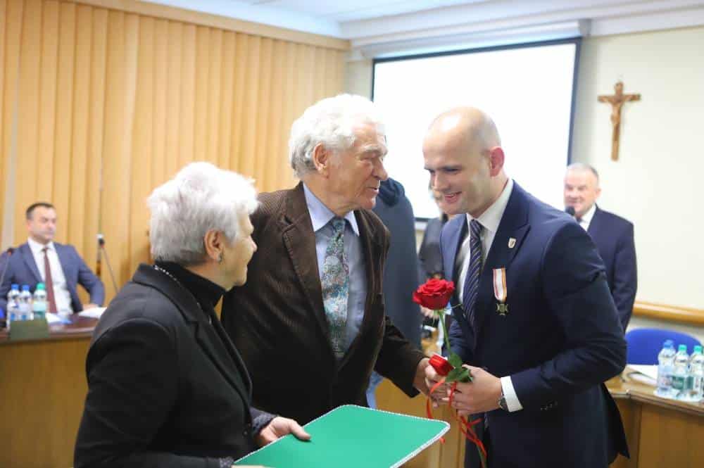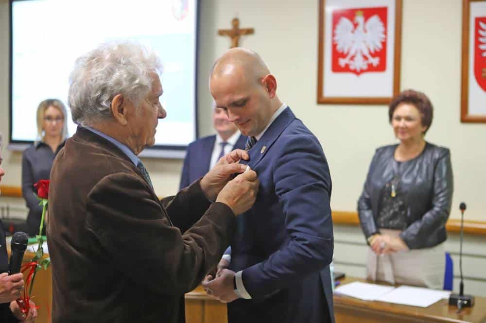 Po powitaniu wszystkich zaproszonych gości Przewodniczący Rady Powiatu Lech Dąbrowski oddał głos Aleksandrowi Gadomskiemu Prezesowi Zarządu Oddziału Mazowieckiego Stowarzyszenia Dzieci Wojny, który to w imieniu Zarządu Głównego Stowarzyszenia Dzieci Wojny wręczył Staroście Płockiemu Sylwestrowi Ziemkiewiczowi Złoty Krzyż Zasługi.