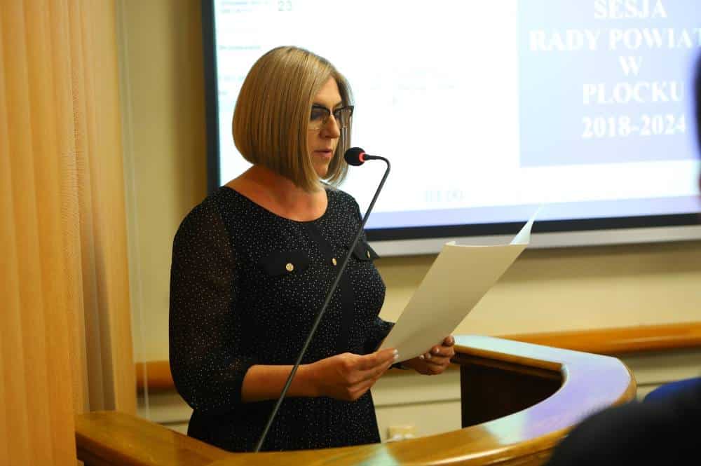 Jednym z najważniejszych punktów obrad było ślubowanie nowej Radnej. Stało się to w związku ze zrzeczeniem się mandatu przez Radnego Powiatu Płockiego Pawła Bogla. Nową Radną Powiatu Płockiego została Izabela Tomaszewska, która uzyskała kolejny najwyższy wynik w wyborach samorządowych w 2018 r. w okręgu wyborczym nr 4, obejmującym gminy Bodzanów i Słupno.