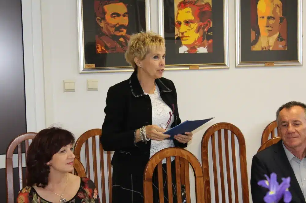 W imieniu Starosty Płockiego Mariusza Bieńka, Wicestarosty Iwony Sierockiej oraz Przewodniczącego Rady Powiatu w Płocku Lecha Dąbrowskiego uroczystość otworzyła i powitała serdecznie gości Dyrektor Wydziału Edukacji, Kultury i Spraw Społecznych Małgorzata Struzik.