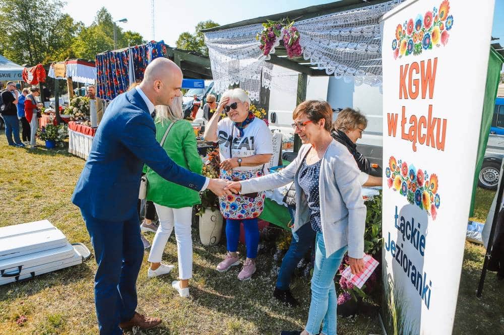 Starosta Płocki Sylwester Ziemkiewicz –„ Jest mi bardzo miło, że możemy dziś spotkać się razem w Łącku, na imprezie która od wielu lat cieszy się ogromnym zainteresowaniu mieszkańców Ziemi Płockiej. To już tradycja i stały punk w kalendarzu imprez Powiatu Płockiego. Cieszę się, że jesteśmy razem gdyż to dzisiejsze przedsięwzięcie ma wyjątkowy i nieszablonowy charakter, jest bowiem wspaniałą ofertą dla szerokiej grupy odbiorców. Zarówno dla rolników, bowiem oni mogą zapoznać się z nowoczesnym sprzętem, mogą odwiedzić stoiska firm i instytucji związanych z rolnictwem, porozmawiać o obecnej sytuacji w rolnictwie, o nowinkach, poszerzyć swoją wiedzę, czy też zdobyć nowe umiejętności. Wiemy przecież, że obecny czas nie jest łatwy dla polskiego rolnictwa dlatego warto rozmawiać oraz wymieniać się doświadczeniem. Natomiast dzisiejsza giełda to również jeden z najpiękniejszych i najbardziej profesjonalnie przygotowanych targów ogrodniczych. To także wspaniałe stoiska z rękodziełem nawiązującym do naszych ludowych tradycji, stoiska Kół Gospodyń Wiejskich z pysznymi potrawami, stoiska dotyczące pszczelarstwa i wielu innych. Życzę wystawcom i kupującym jak najlepszych zakupów, dobrze spędzonej niedzieli przy pięknej pogodzie.”