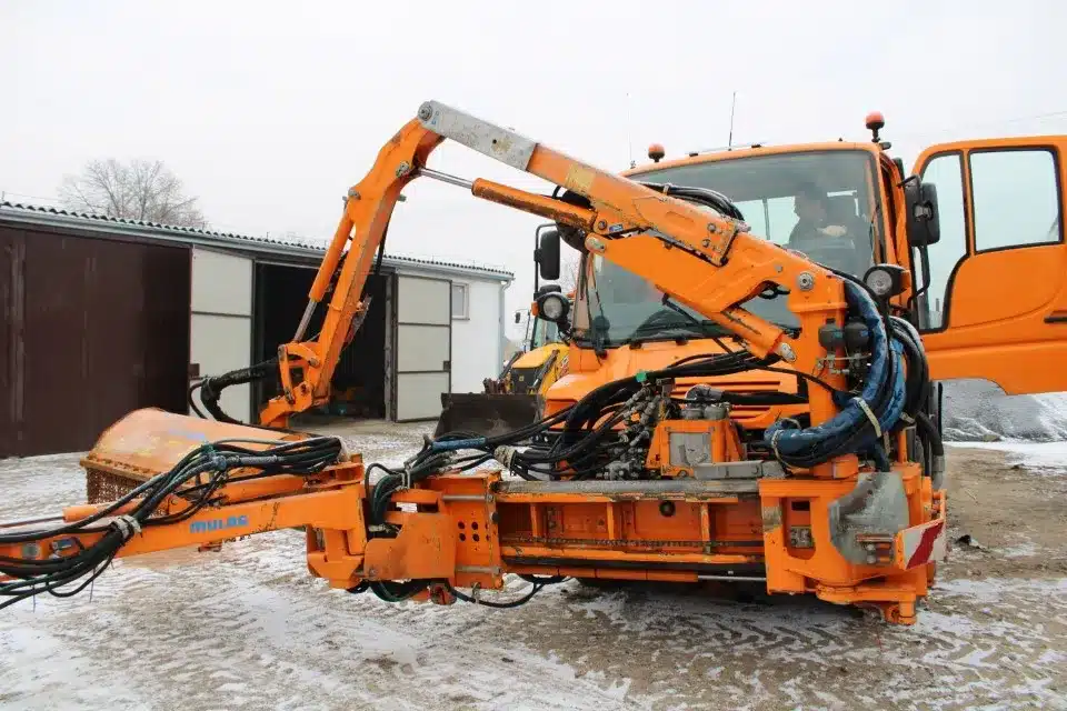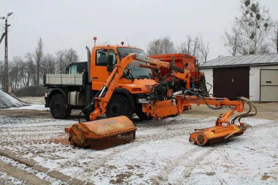 Warto podkreślić, że UNIMOG jest pojazdem uniwersalnym, istnieje możliwość montażu szerokiego zakresu osprzętu. Aktualnie z przodu zamontowana jest kosiarka, ale można do niego dokupić np. posypywarkę oraz pług i wtedy staje się on kompletnym pojazdem do zimowego utrzymania dróg.