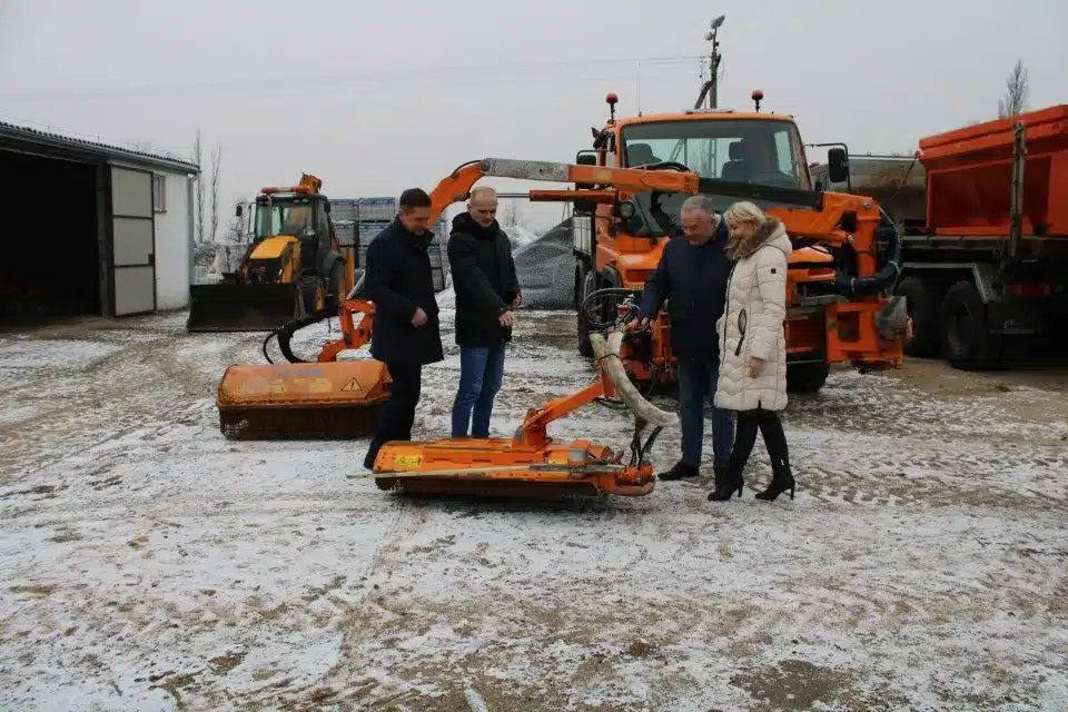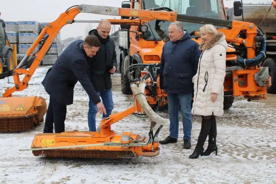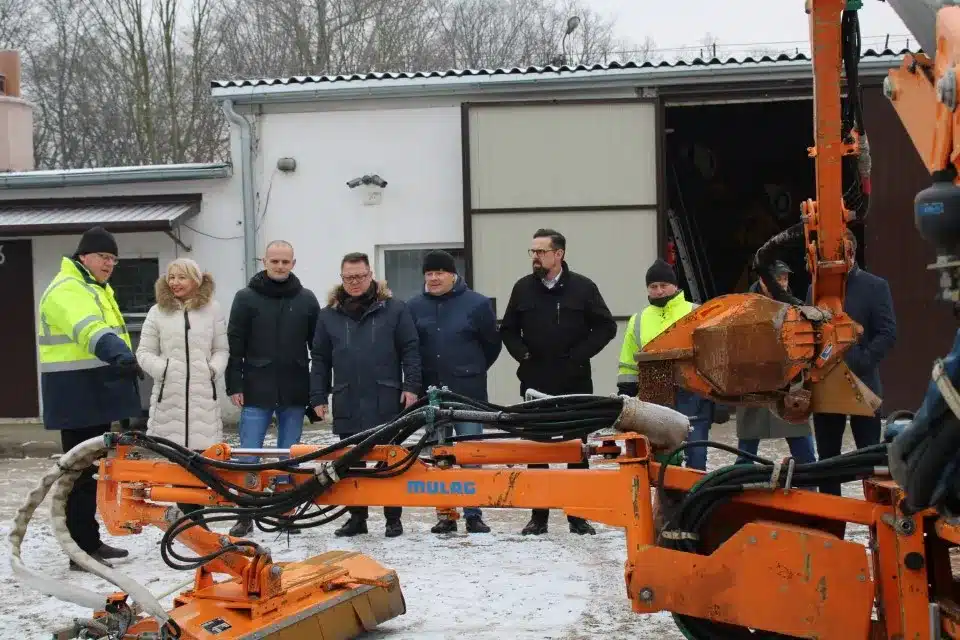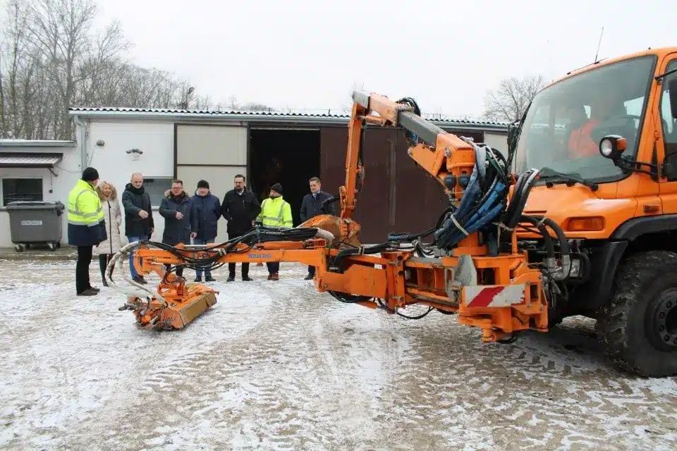 Najważniejszym punktem wizyty było zademonstrowanie władzom Powiatu dopiero co zakupionego pojazdu wielofunkcyjnego, wyposażonego w podwójną kosiarkę umożliwiającą jednoczesne koszenie pobocza i skarpy rowu.