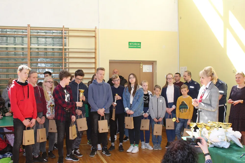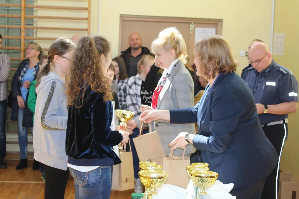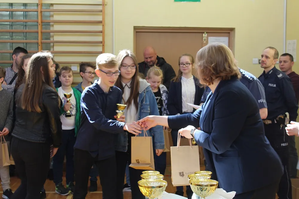 Puchary, nagrody i poczęstunek dla uczestników ze szkół w Powiecie Płockim ufundowało Starostwo Powiatowe w Płocku. Zwycięzcom serdecznie gratulował Wicestarosta Iwona Sierocka, która podkreśliła, jak ważne jest bezpieczeństwo w życiu każdego człowieka. Podziękowała też młodzieży za ogromną wiedzę, którą często przekazują swoim rodzinom.